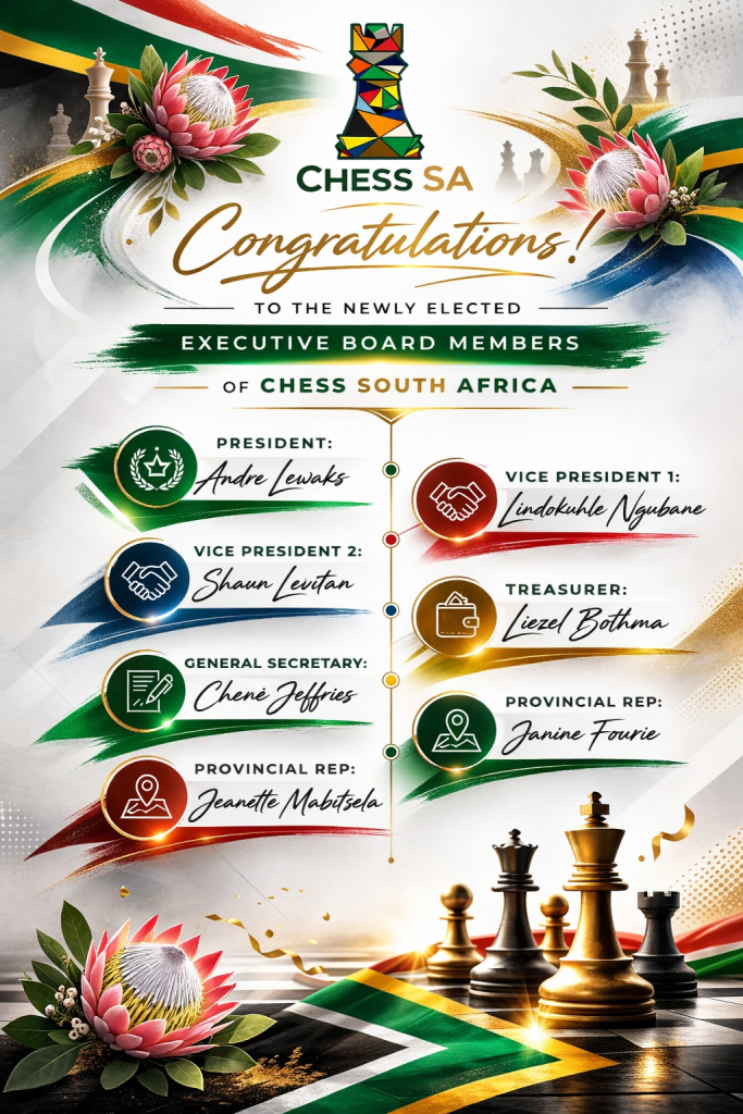 Congratulations to the incoming leadership team on your election. We wish you every success as you serve South African chess and help drive the federation forward.